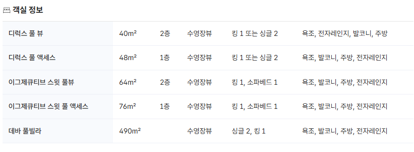 | 옵션 상세 | 정원 | 객실 요금 |