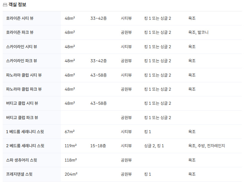 클럽 이용 객실 타입