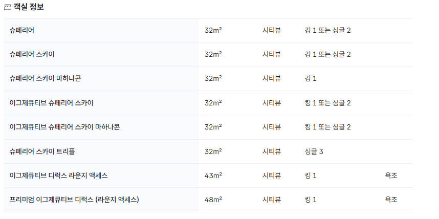 클럽 이용 객실 타입