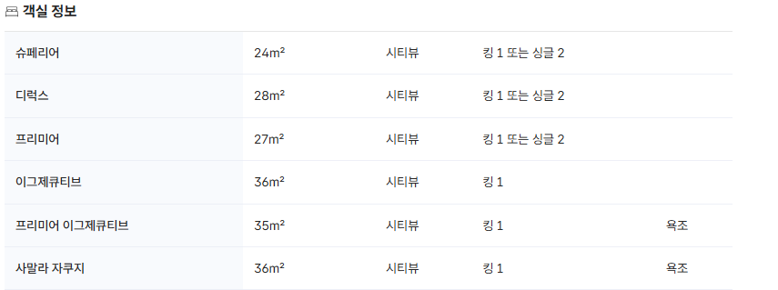 간이침대 사용 가능 여부는 객실별로 다릅니다