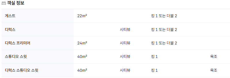 | 옵션 상세 | 정원 | 객실 요금 |