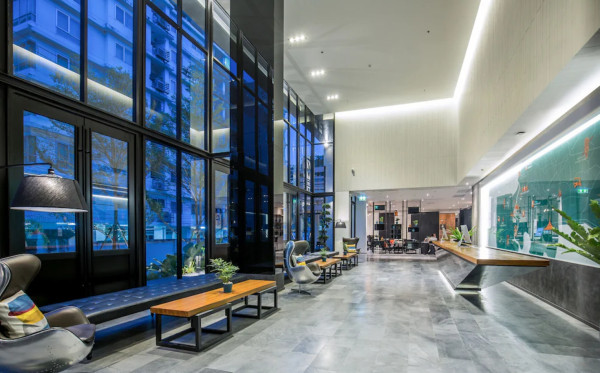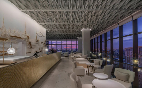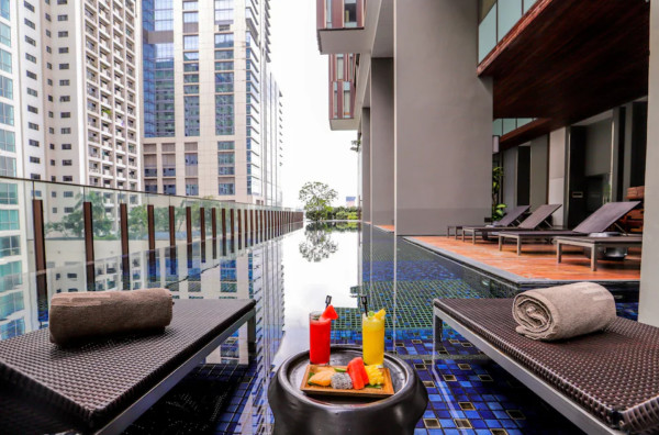 34층 인피니티풀이 인상적이며, 화이트 톤의 세련된 시설과 루프탑 바가 있는 럭셔리 호텔