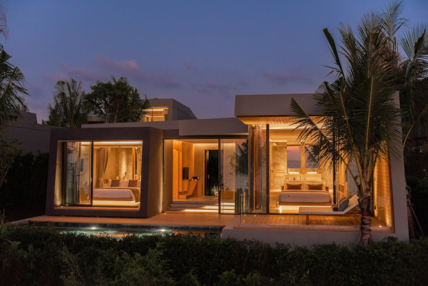 개인 수영장과 독특한 복층 디자인을 갖춘 우아한 계단식 빌라로 두 사람을 위한 고요한 휴식을 제공합니다