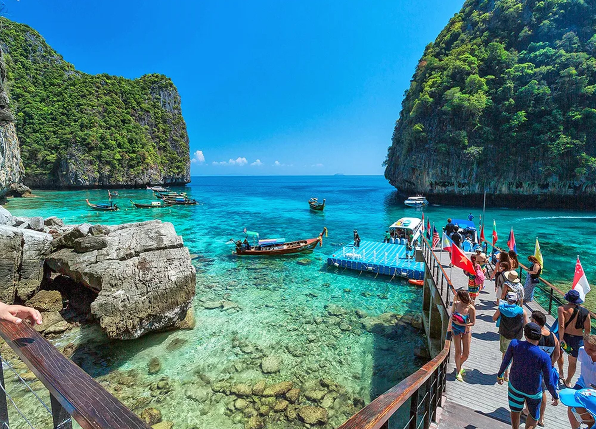 크라비 지방에 속하지만 푸켓과 크라비 사이에 위치한 피피섬(Phi Phi Islands)은 6개의 섬으로 이루어진 군도로, 두 개의 주요 섬은 피피돈(Phi Phi Don)과 피피레이(Phi Phi Ley)입니다. 피피돈(Phi Phi Don)과 태국 끄라비 지방의 피피돈 근처 안다만 해에 위치한 작은 열대 섬인 코 마이 파이(Ko Mai Phai)라고도 알려진 뱀부섬의 아름다운 석회암 지형, 깨끗한 해변, 다채로운 해양 생물로 가득한 청록색 바다를 보며 휴식과 활동적인 활동을 즐기는 일일 투어에요.