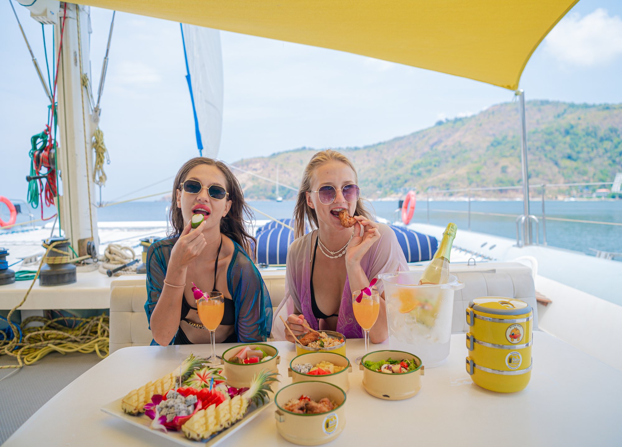프리미엄 카타마란 요트 투어로 웰컴 드링크, 선상에서 점심식사를 포함하고 있습니다.