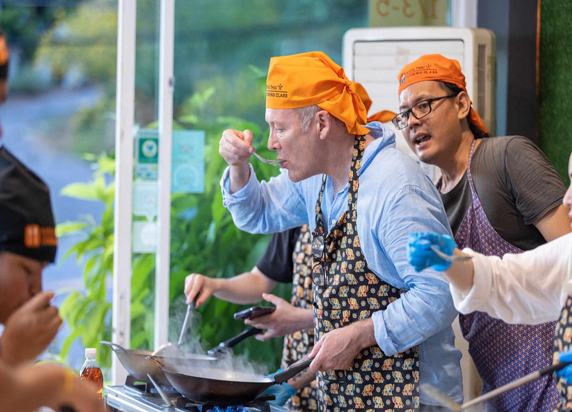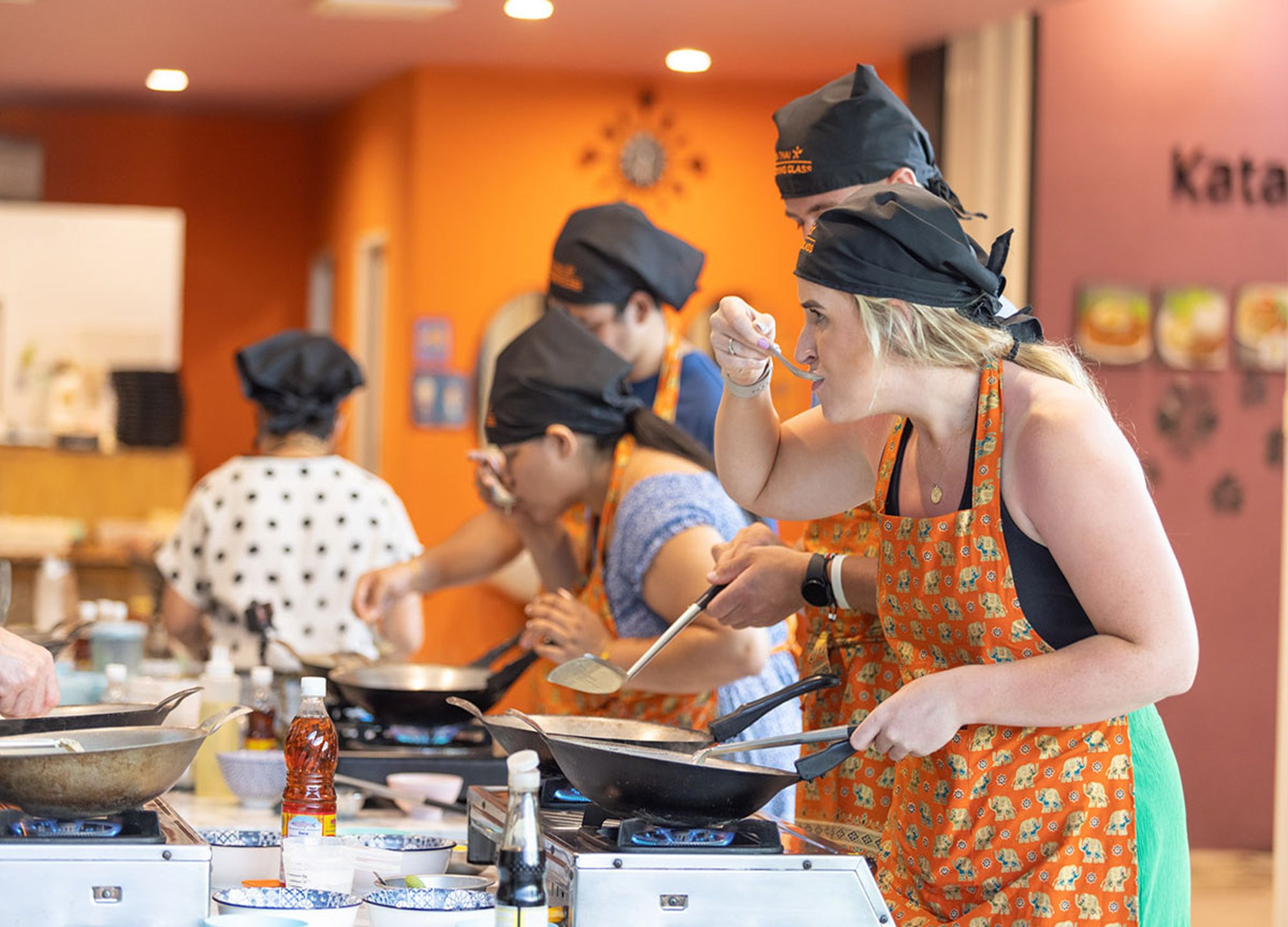 카타 타이쿠킹 푸켓에서 경험이 많은 강사님과 4가지의 태국 전통요리를 배우실 수 있습니다. 무료 픽업서비스가 포함되어 있습니다.