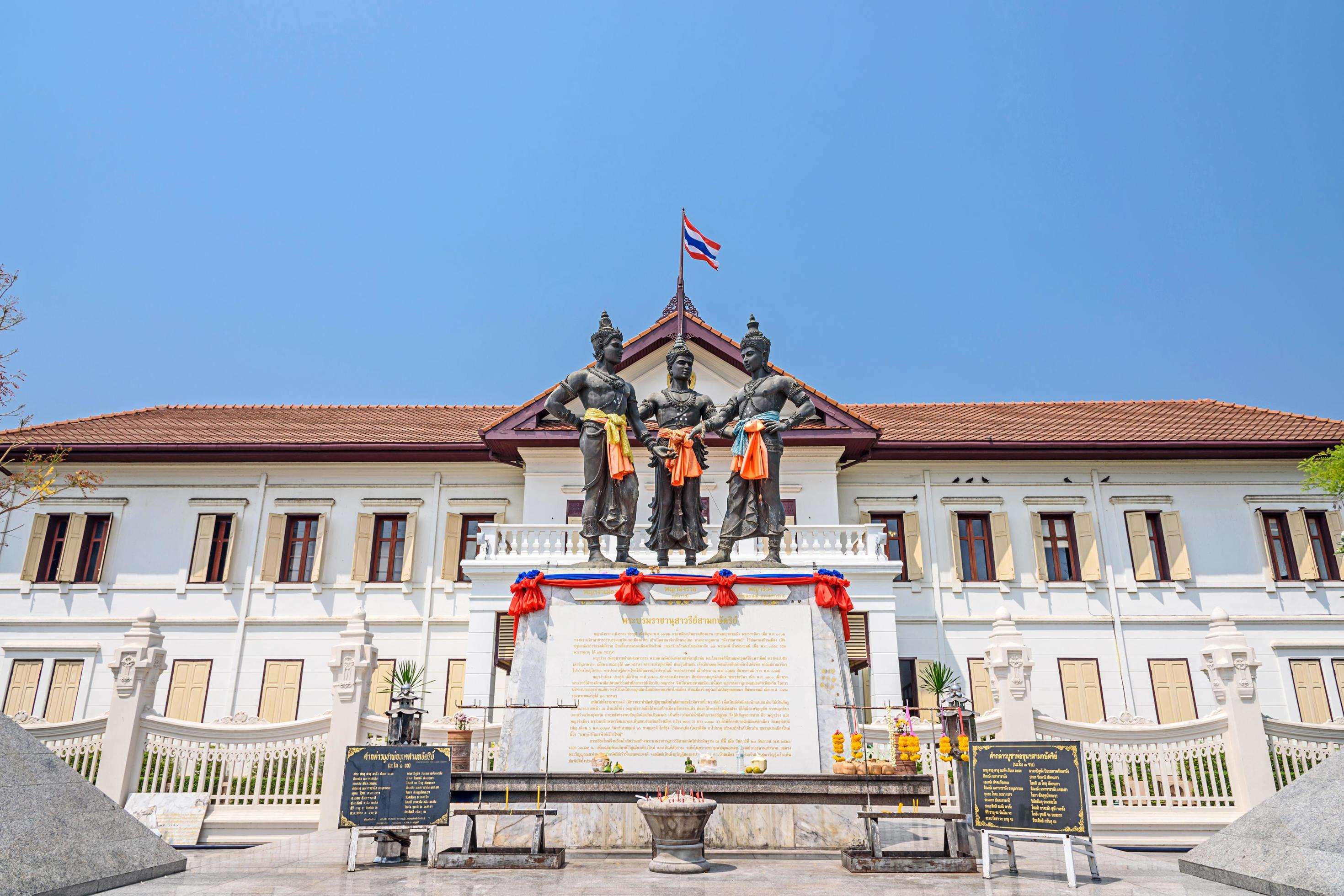 삼왕상(Three Kings Monument)은 태국 치앙마이 시내 중심에 위치하고 있으며 치앙마이의 설립과 관련된 세 명의 왕을 기리기 위해 세워졌습니다. 13세기 후반에 치앙마이 지역의 발전과 협력에 큰 기여를 한 세명의 왕, 멩라이 왕(King Mengrai), 람캄행 왕(King Ramkhamhaeng), 그리고 응아뭄 왕(King Ngam Muang)의 동상입니다.