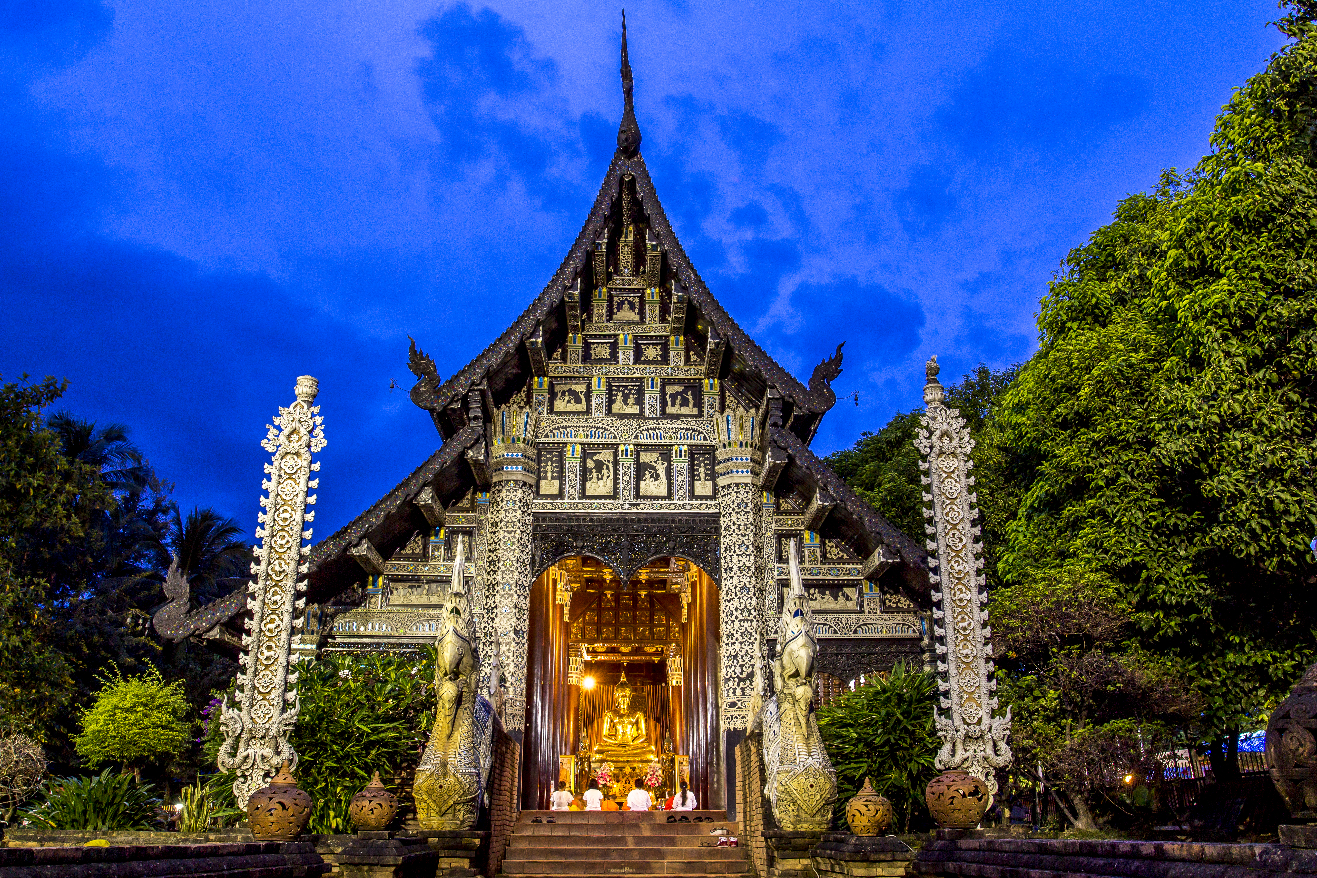 왓 프라싱(Wat Phra Singh Woramahawihan)은 치앙마이 올드 타운에서 가장 유명한 사원으로 란나 왕국의 왕인 파유 왕(King Phayu)이 그의 아버지인 캄푸 왕(King Kham Fu)을 기리기 위해 1345년에 건립되었습니다. 사원의 이름은 이곳에 모셔진 사자 모양의 프라싱(Phra Singh) 불상에서 유래했으며 14세기 후반에 스리랑카에서 란나 왕국으로 가져온 것으로 전해지는 불상은 아름다운 금으로 장식되어있으며, 매우 정교한 조각이 특징입니다.