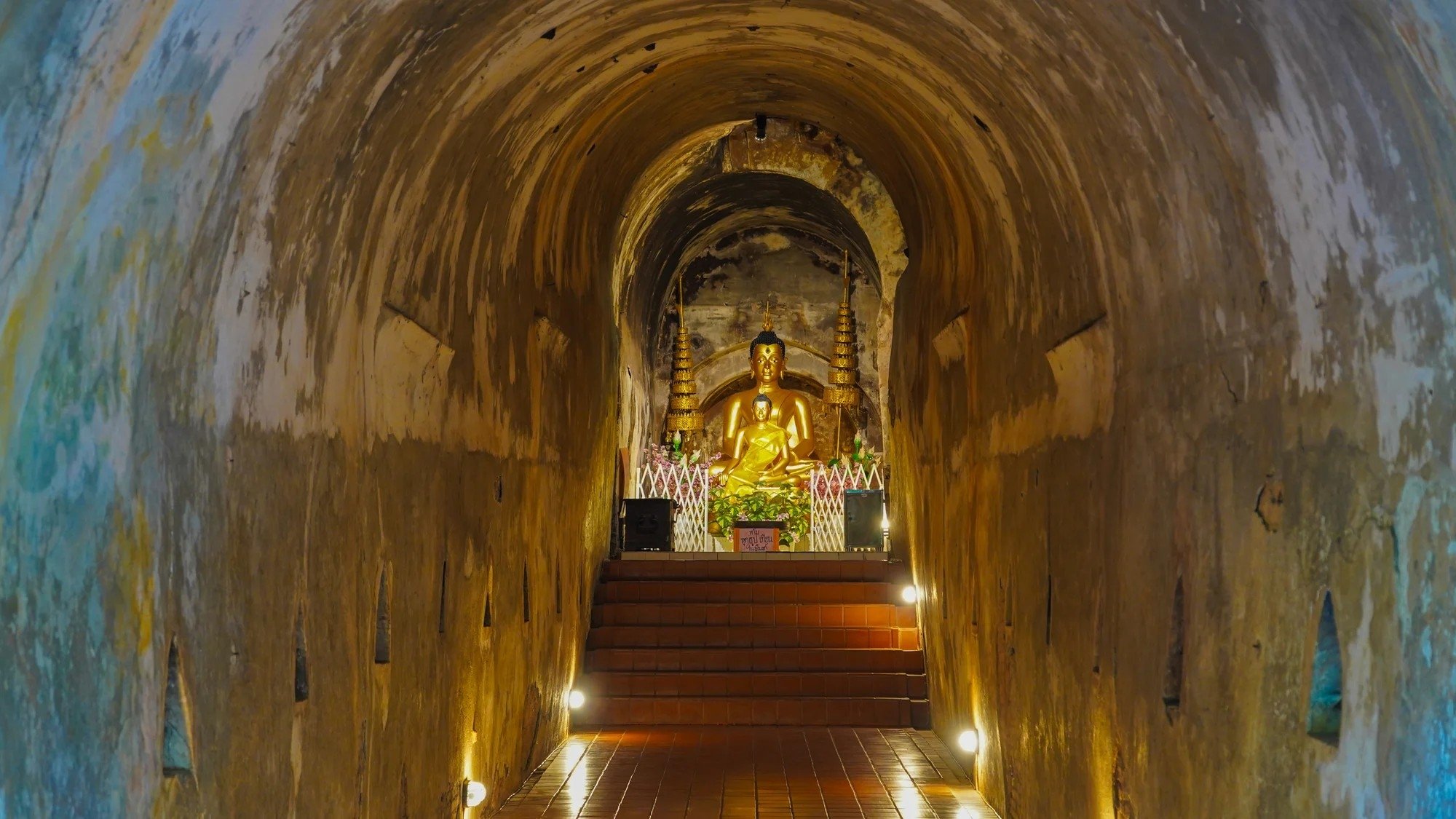 왓 우몽은 숨겨진 사원 또는 터널 사원이라고 불리는 사원입니다. 미로 같은 터널 안에 여러 불상들이 안치되어 있습니다.