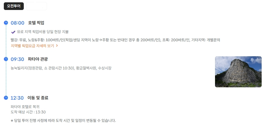 파타야 시내를 제외한 파타야 외곽은 픽업 추가 요금이 발생합니다.