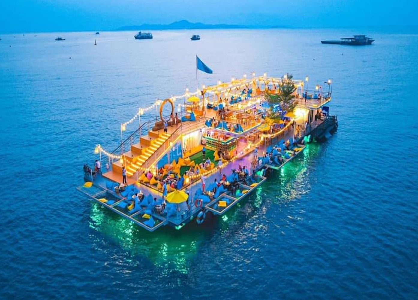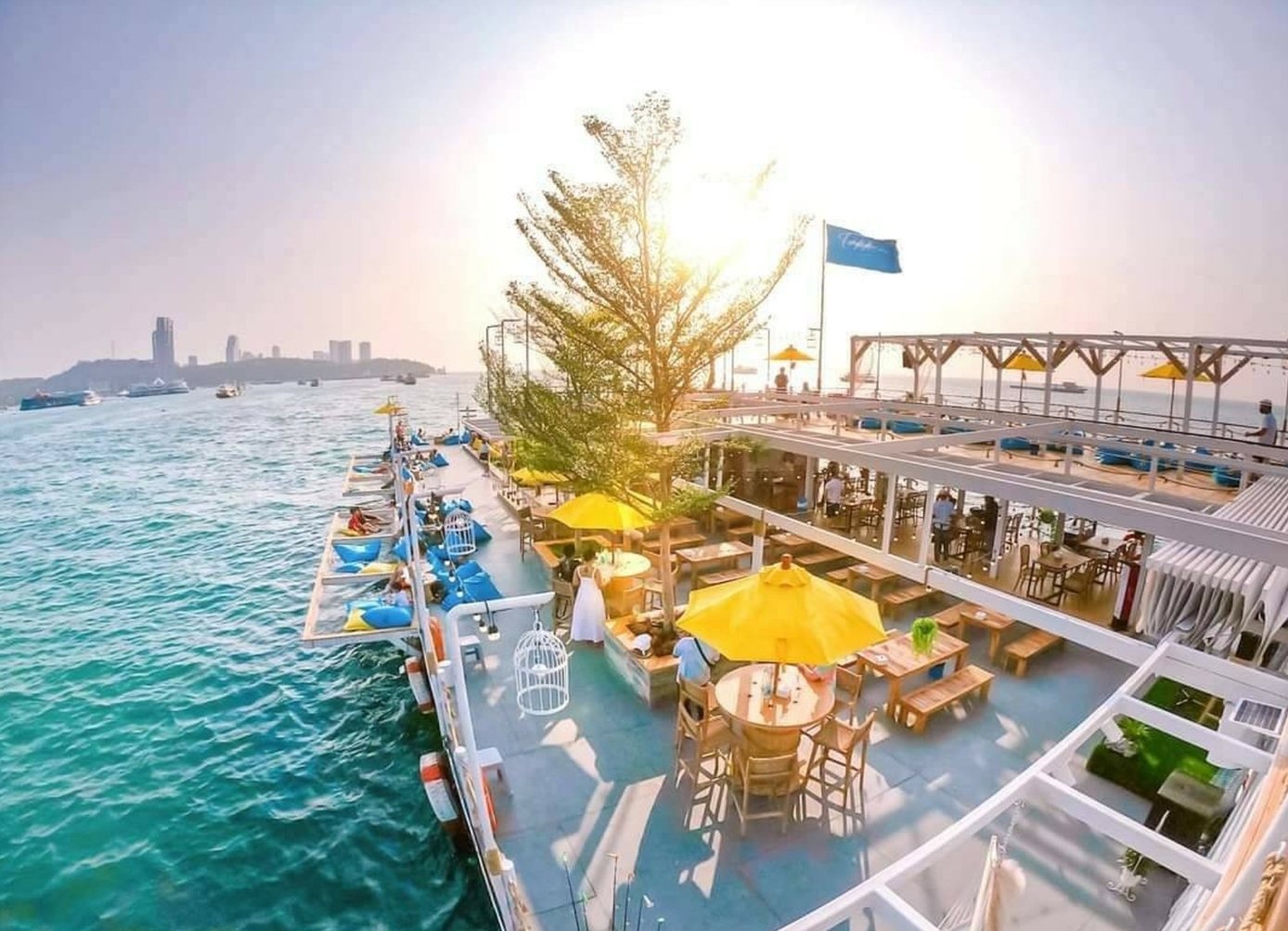 멋진 인테리어와 시설을 갖춘 탑피아 선상 카페에서 자유시간을 가지며 자유롭게 식사하고 오징어 낚시도 즐길 수 있습니다.